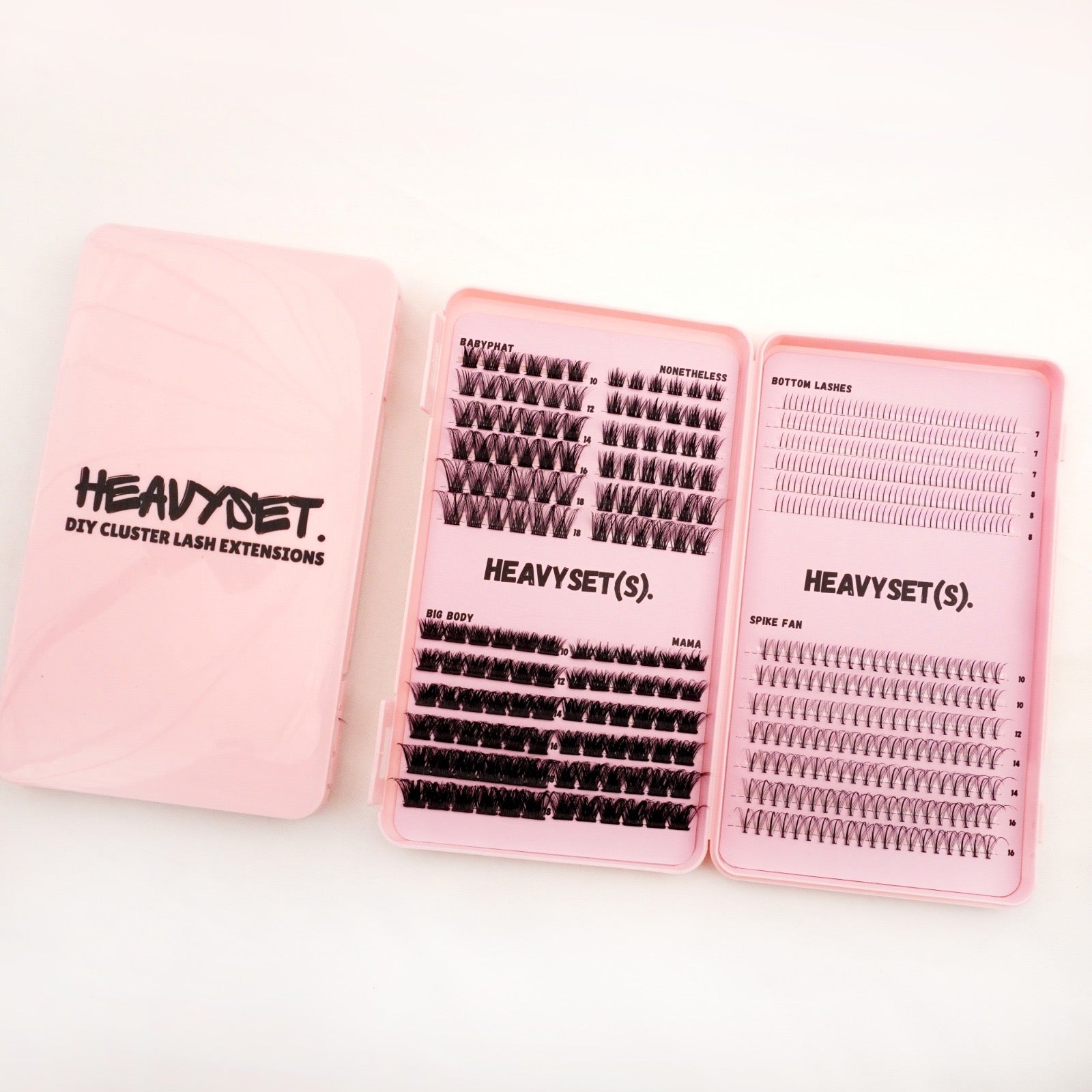 4 HIGH QUALITY CLUSTER LASH STYLES: MAMA, BABYPHAT, NONETHELESS, BIG BODY.