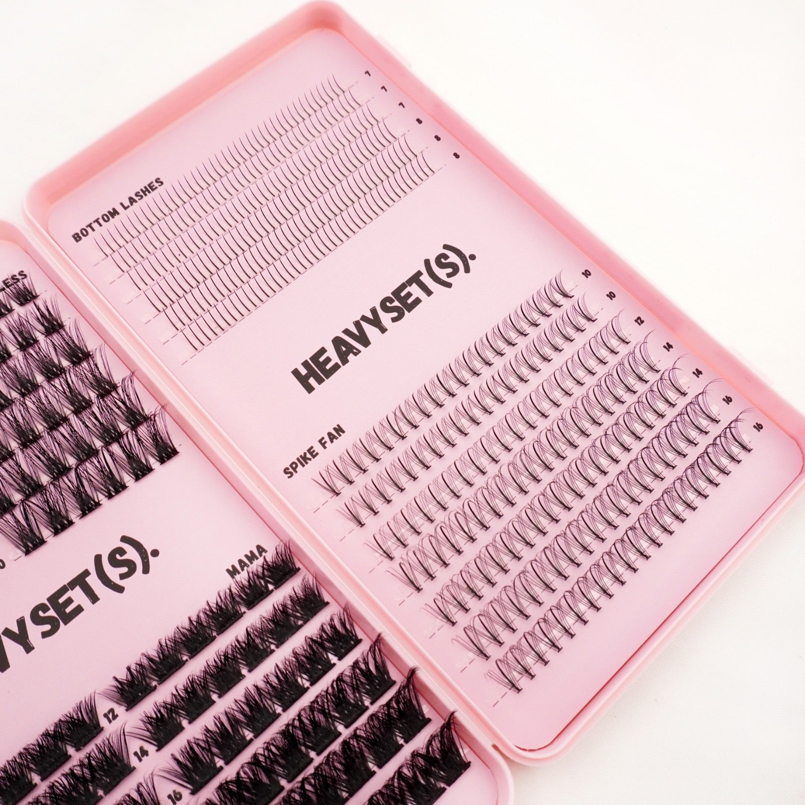 HEAVYSET Lash clusters are made of high-quality fibers, eyelash extension clusters knot-free, vegan, cruelty-free. The eyelash clusters are soft, light, and easy to apply. For a comfortable and non-irritating to wear.