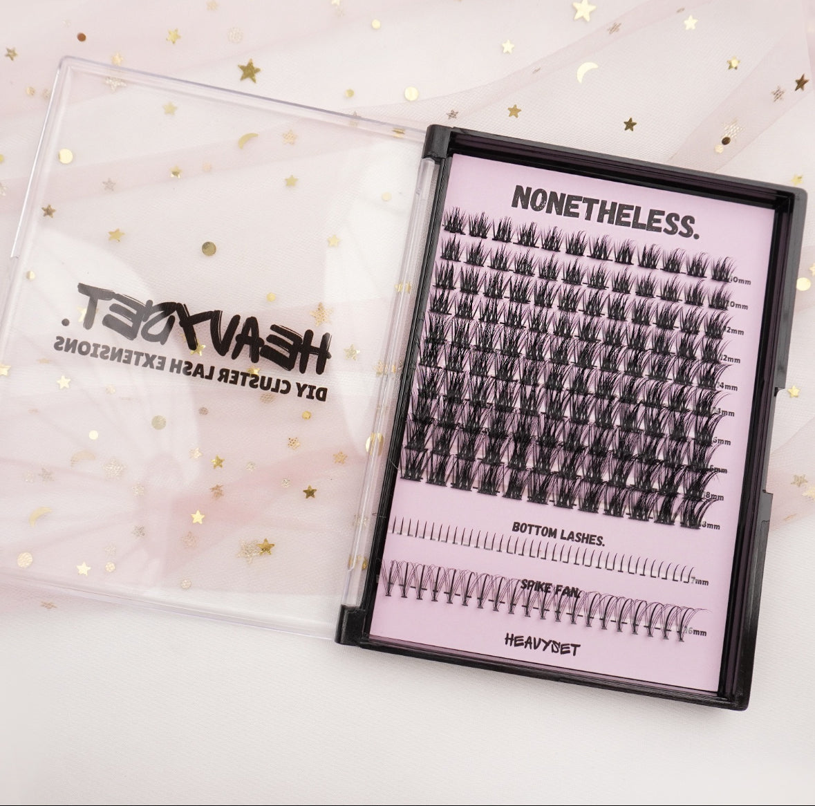 NONETHELESS: XL CLUSTER LASH TRAY WITH BOTTOM LASHES & SPIKE FANS by HEAVYSET.